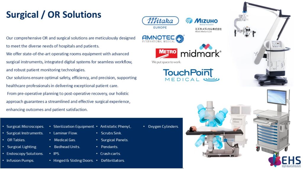 The look and feel of a healthcare environment play a meaningful role in shaping the patients’ experiences and can be an important factor in assessing their future healthcare provider. With this in mind, healthcare companies are now studying & implementing ways to enhance the patient room experience with modern and comforting ambiances. At EHS, we are proud to have partnered with leading and reliable brands- such as Favero,Stanley Healthcare, AOTI Inc & Horcher medical systems- and through our knowledge & expertise of managing patient room requirements, we offer an unmatched experience for our patients. We have proven expertise to provide total room solutions including managing and executing VIP room fit-outs in the region. Our Hospital Room Solutions adhere to the strictest quality standards (FDA, CE & UL Listing) as well as Greenguard standards