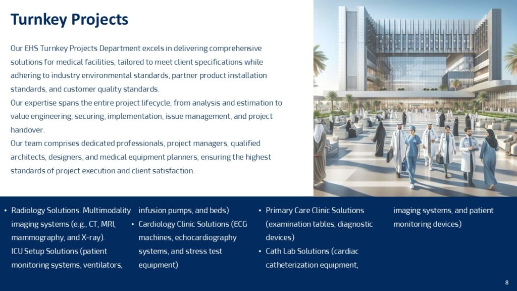 This particular segment focuses on all of our products that equip hospitals and healthcare institutions to enable and facilitate the day to day operations. We provide the following products and solutions: